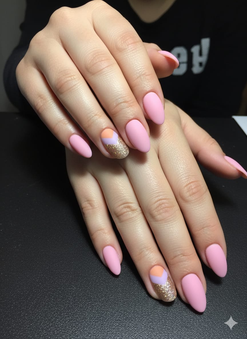 Pink Nail Art Almond Nails